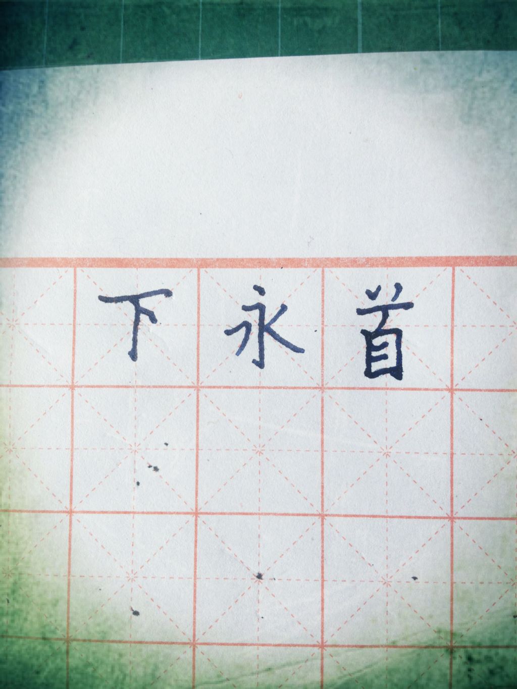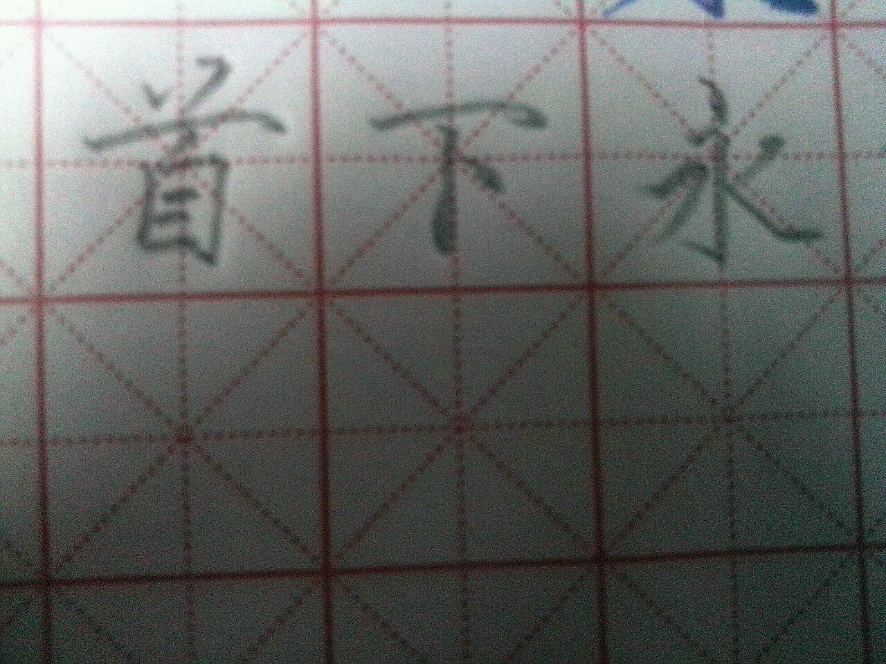 下字的点稍微再上一点点 ,首下面的自,撇第一个首比较好,里面的两短横居中,间距要均匀