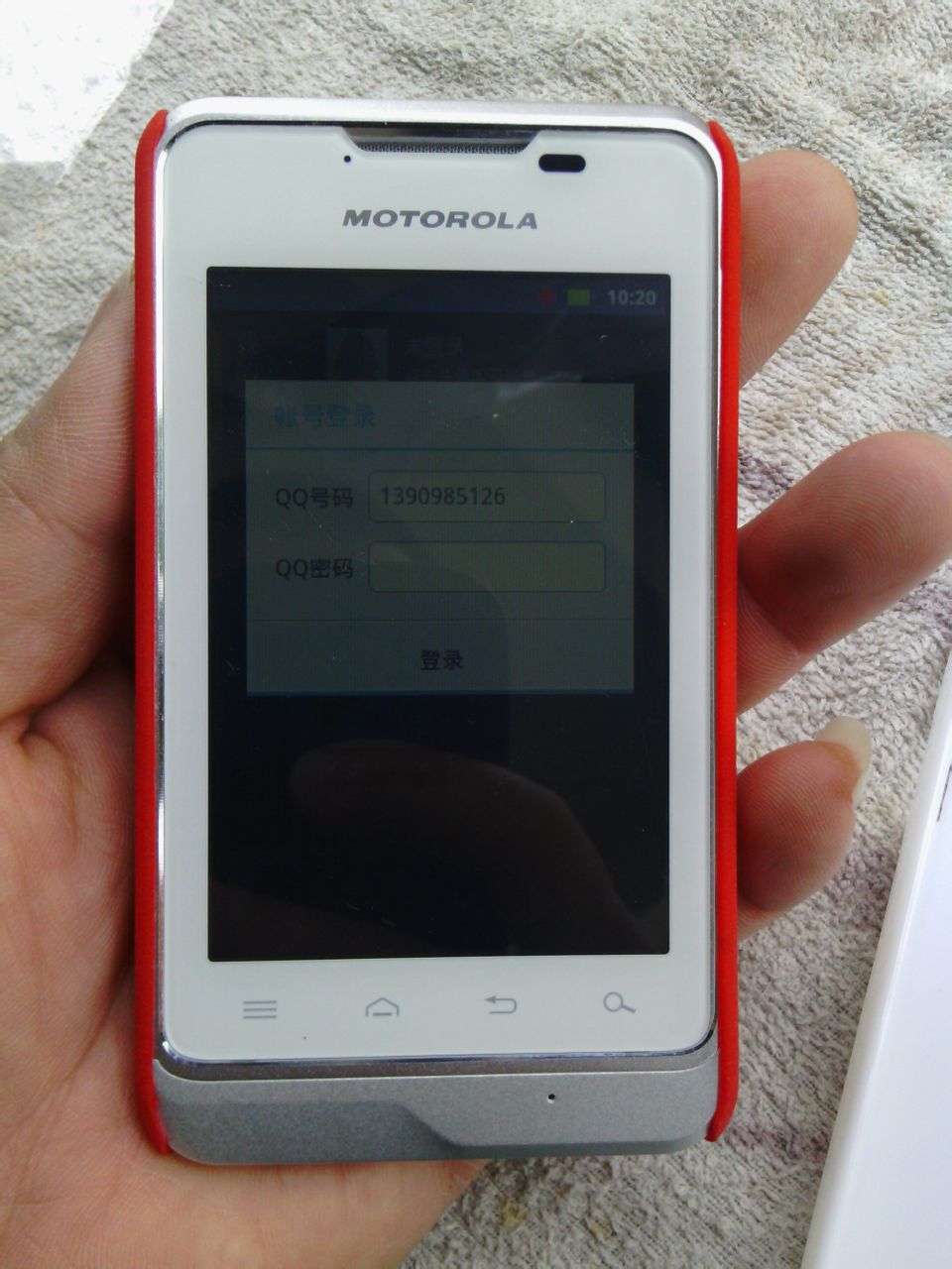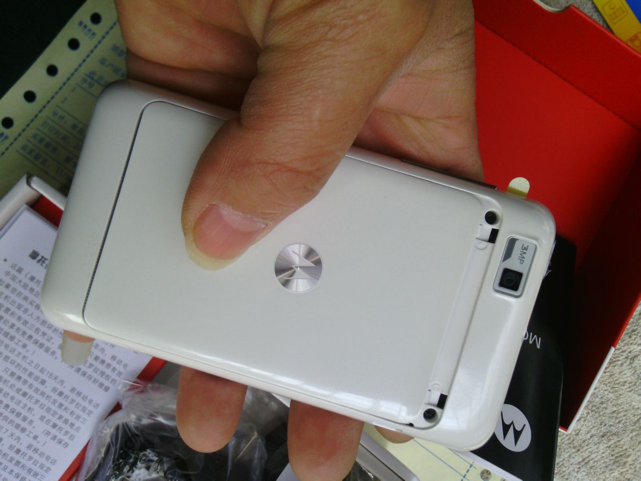 看外表是全新机器,装好电池开机,要设定语言,选择中文,什么的,自带软件比较多 都是谷歌的东东,有些还是有用的 不过不能root 只能将就用了,少装点软件。