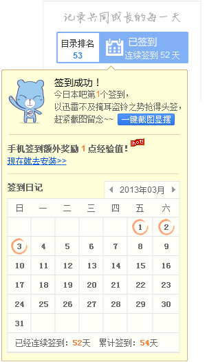 连续在本吧签到52天,晒下签到排名照,看看我神马水平