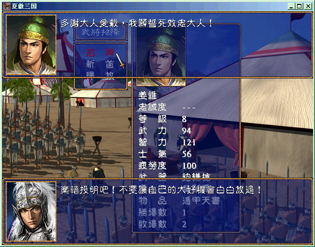 前面忘说了,这个版本爆率太低,我是一把剑都没爆出来!此外武将计学习条件智力要求太高,只能由文官或者姜维、邓艾来学习,这个建议朝大改改!
