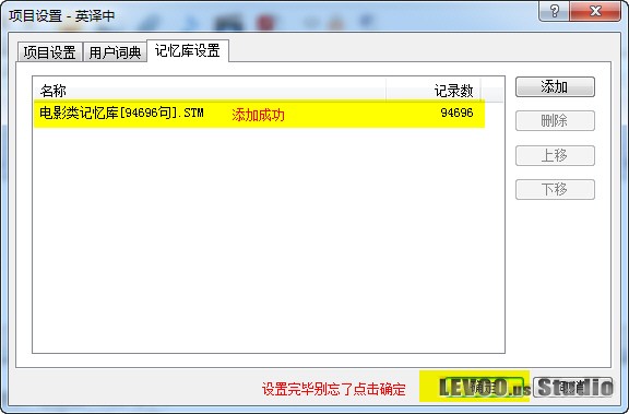点击项目管理菜单下的项目设置,便可再次打开项目设置对话框,添加新的词典和记忆库,如图: