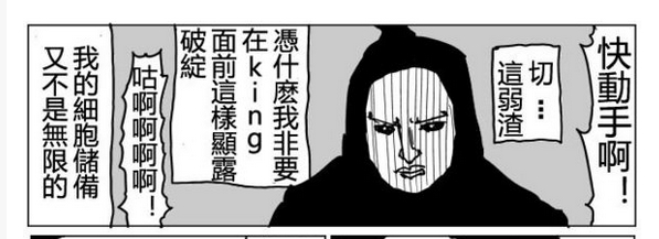 怪人协会老大说king极少出手,唯一有目击者的就是他曾没出手的情况下当众击晕了怪人[变色龙],实际上变色龙只是自己吓晕了,但传到去怪人协会的时间已经成了现在这版本