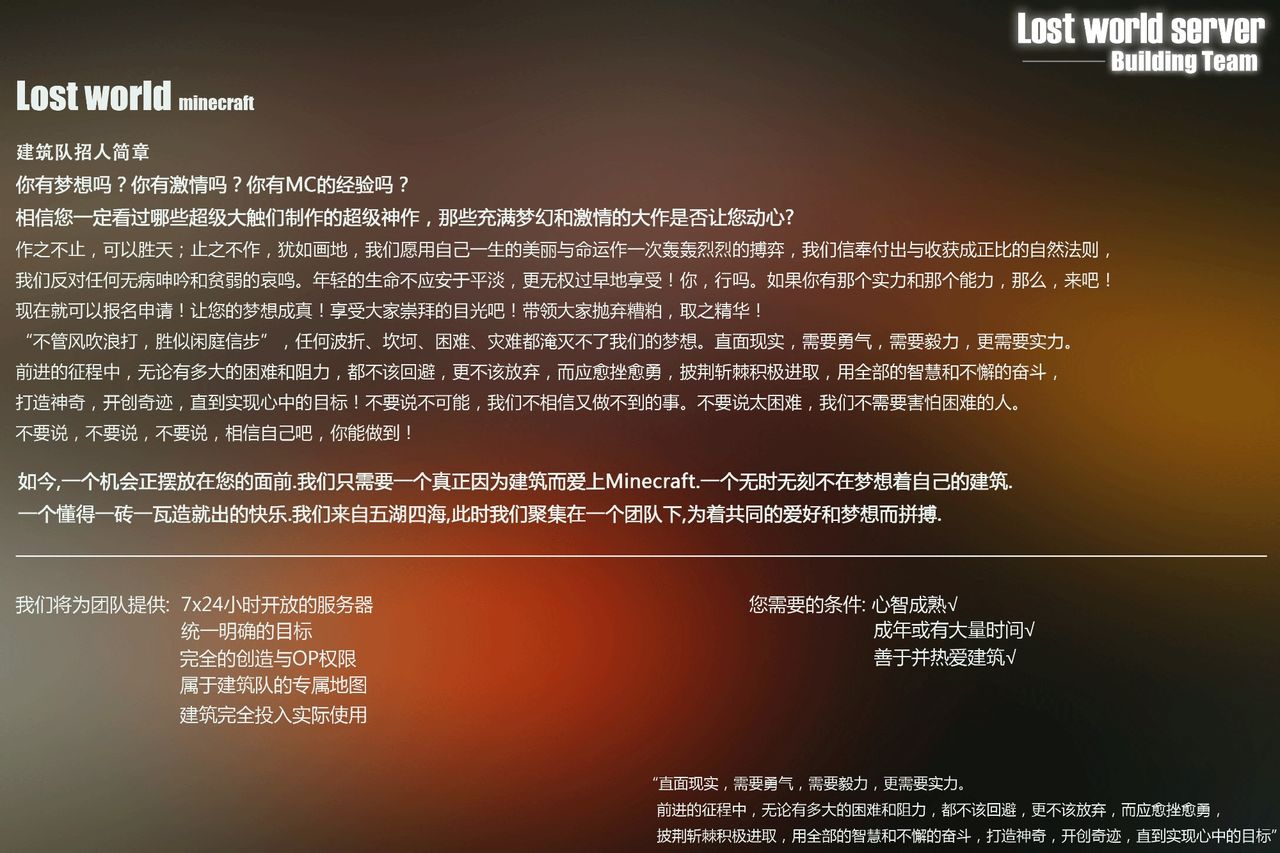 LWS建筑团队欢迎您的加入~! 我们目前尚在起步阶段.希望加入的请在此帖中回复自己的联系方式及以前的作品.我们会挑选其中合格人的进行进一步的审核!
