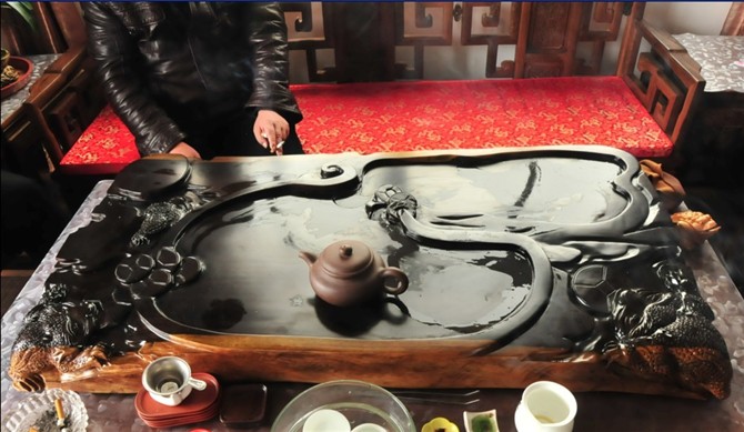 宿舍的精雕楠木茶盘