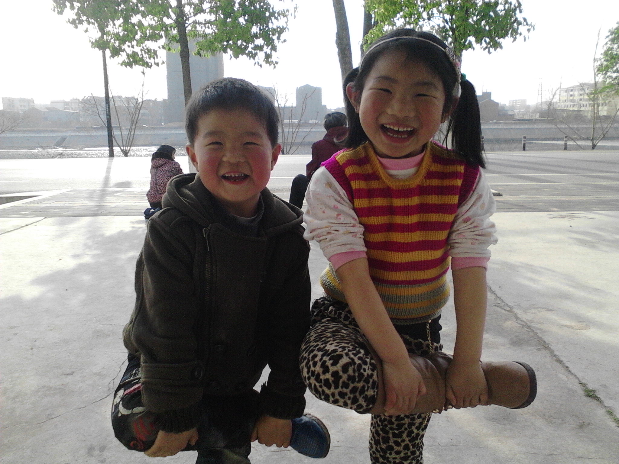 两个小孩儿捣驹,哈哈