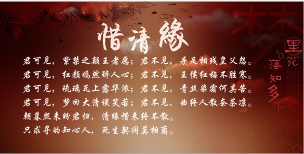 君可见,紫禁之颠王者愿;君不见,手足相残皇父怨。君可见,红颜嫣然醉人心;君不见,王侯红梅不胜寒。君可见,琉璃瓦上露华浓;君不见,青丝染霜何其苦。君可见,梦回大清谈笑若;君不见,曲终人散奈茶凉。朝暮熙来盼君归,清缘惜来终不散。只求寻的知心人,死生契阔莫相离。