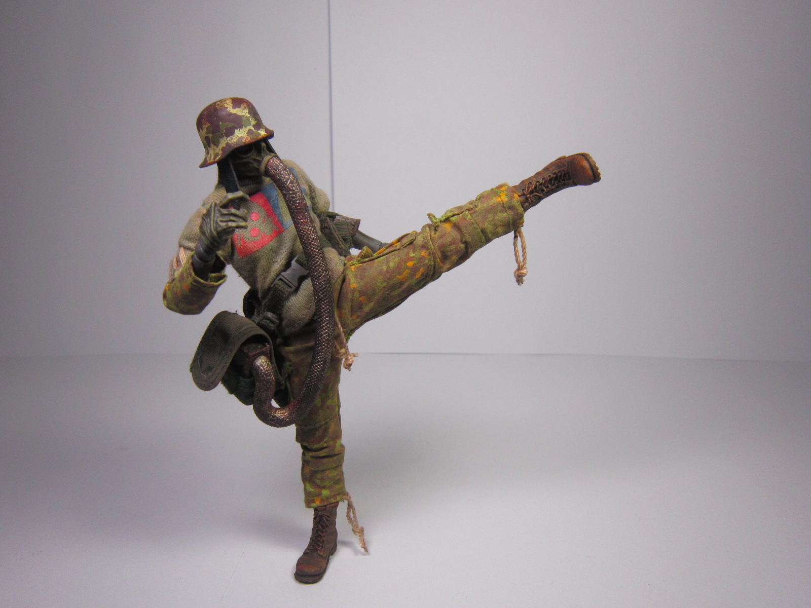 小手枪、身体细节、军靴展示。军靴做得很有质感,但是我并不懂这是什么一体成型工艺或者啥材质的,凹造型的时候抓地性不错,下面会有展示。