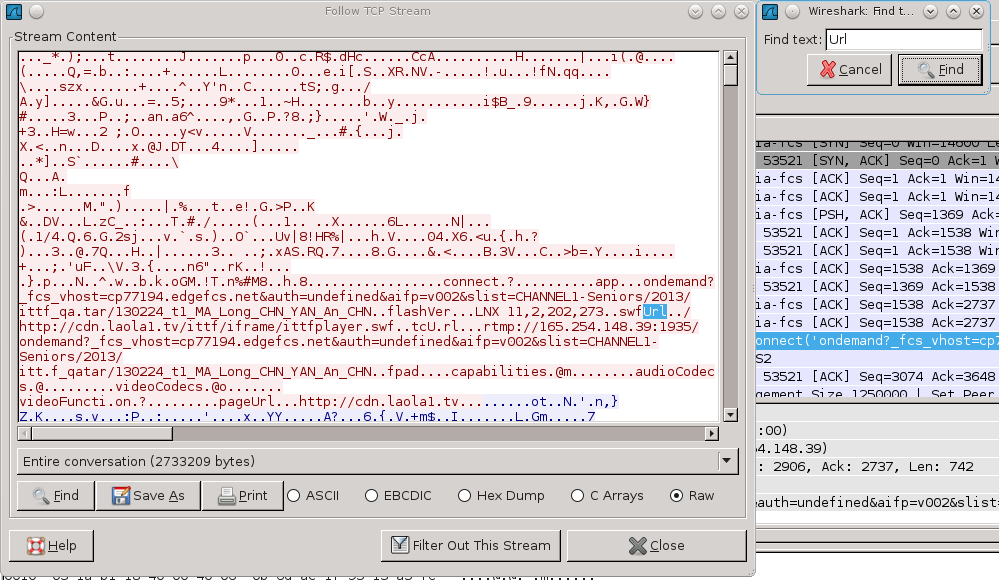 但是rtmp要获得视频,肯定要和服务器交换信息。 这个信息就在rtmp协议最开始的“握手”数据包里面。 那么只要找到flash播放器发送给服务器的关于播放视频的信息,然后把这些信息给rtmpdump。 (个人猜测),rtmpdump就可以伪装成flash player,也放松握手包给服务器,这样服务器就会把视频流发送回来,就被rtmpdump给下载下来了。
