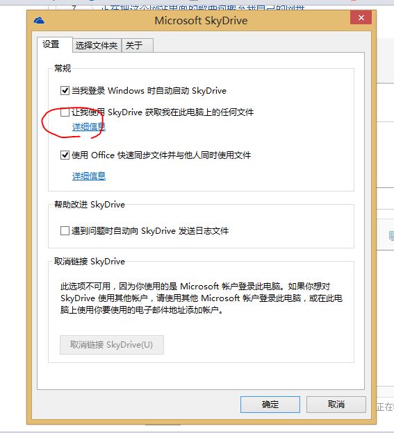 “让skydrive获取我电脑里的所有文件”这个选项