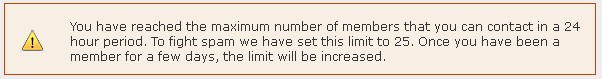 你大概是才注册的用户吧? 每天你至多给25个人发信息或者留言。这是上限。再过一阵子,这个数字会提高一些。