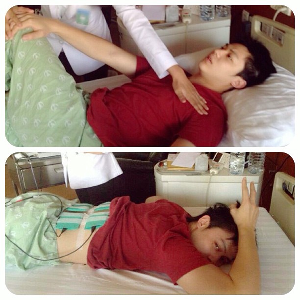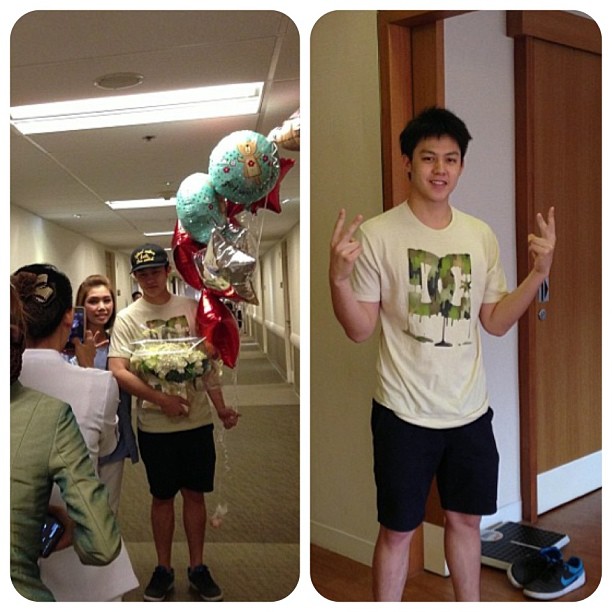 知名一线小生Mark Prin简短说道,“今天好转了很多,疼痛减轻。我自己并没有什么紧张,因为只是肌肉发炎而已。医生不让做比较剧烈的运动,不要坐立超过45分钟,而是让我站立行走。我要感谢各位粉丝以及各位前辈对我的关心。”至于说前往探望的宾客,医生则予以谢绝,因为不想让那位知名一线小生太多活动,而是让他彻底好好地休息。但是有粉丝们送鲜花前来,以及联合利华公司方面,还有Ae Suppachai、Anne Thongprasom、Pancake Khemanit、Ja (Yossinee Na Nakorn)也送来鲜花。