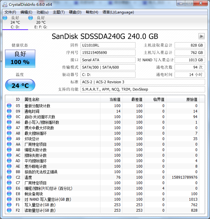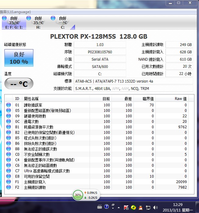回复 HK8383 :测试是在这之前,这是测试之后的图,听说测试多了不好,我才用这个软件查看写入量到底有多少了。才发现每天200G递增。今天开了两小时从688增加到718了