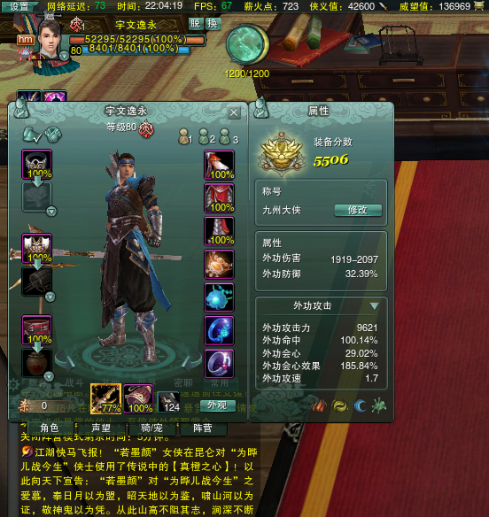 然后,两个号技能秘籍都是满的,经脉也满,小号没有什么时间刷声望和练生产技能,但是有装备基础,可以直接上手,侠义值和威望也比较充足,200块钱求脱手,给大号充点卡。。。绑定邮箱手机都可以修改,账号分离90块比一个角色还贵,不建议分离,但是保证诚心出售。。暂时就想到这么多