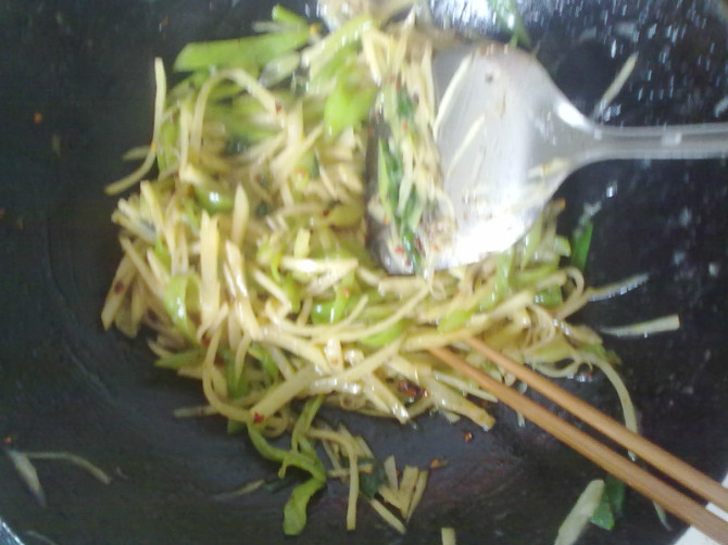 早上经常因为想多睡那几分钟而吃不上饭就跑去上班,尚混子大显身手给炒的酸辣土豆丝。
