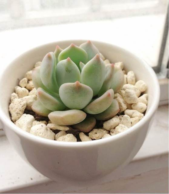 贵货来了来了!雪球一枚120米,6CM左右,不知明贵货也是120,老板写的名字是多肉植物--拟石莲--Echeveria secunda pubal,求大神鉴定!!!