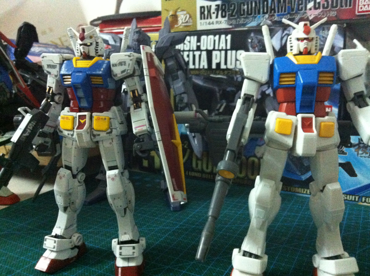 1/60HG,貌似绝版很久了都。。我从来不买高高的,太虐人了,独角是OVA版的,只是骨架喷了色,格林炮倒高高的,所以看起来肉些。豪华强自是我老婆组的,所以那些大龙线请无视。
