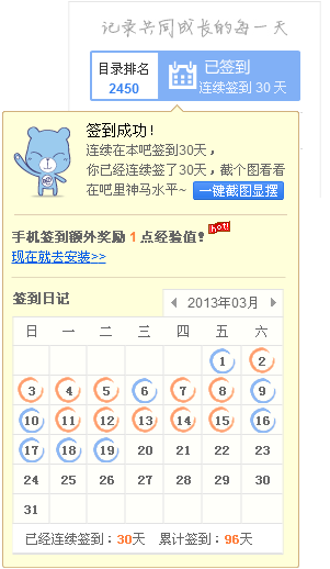 连续在本吧签到30天,晒下签到排名照,看看我神马水平