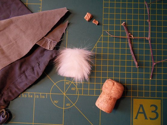 切一小块灰色的布,长度能够绕软木塞一圈即可。用万能胶粘在软木塞上,这就是甘道夫的长袍了。