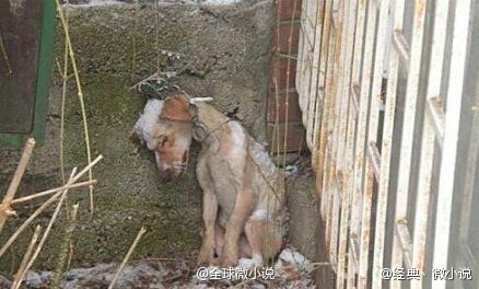 主人搬家了,遗弃它在寒冷的庭院,脖子上拴的铁链紧贴墙面,身上还覆盖着雪,它孤独地死于绝望。它到临死前都还在苦等着主人来接它,奉献了一世的忠诚,难道就是换来如此下场?恳请养狗的主人,一旦选择,请终生负责 。