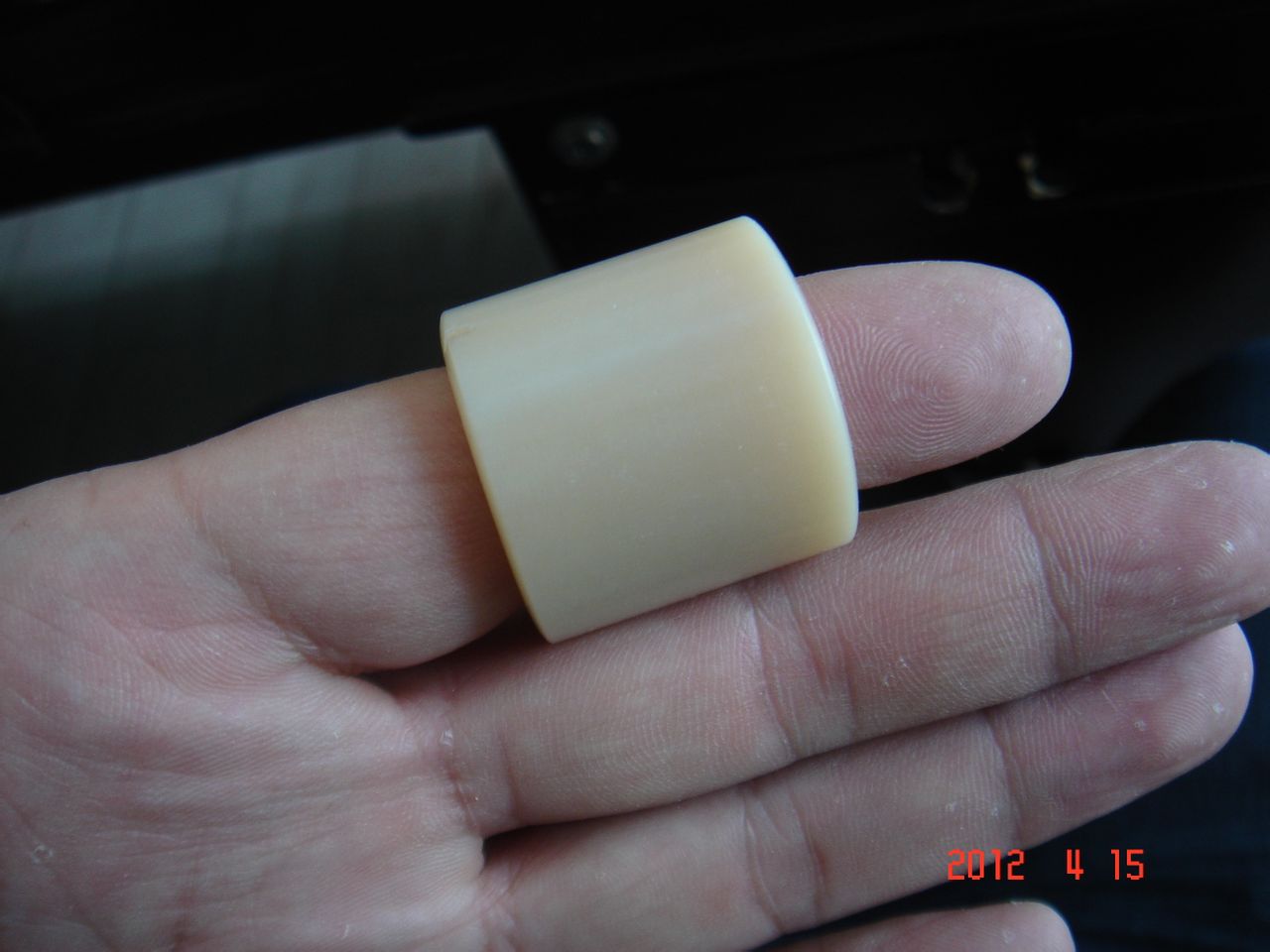 玩了近一年的牦牛骨扳指,现在像玉一样了。开始的时候很白,很干。现在很润了。过年的时候,弟弟看到了,还误以为玉石的呢,呵呵