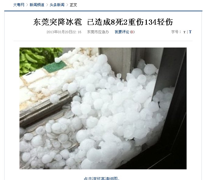 东莞突降冰雹 已造成8死2重伤134轻伤...