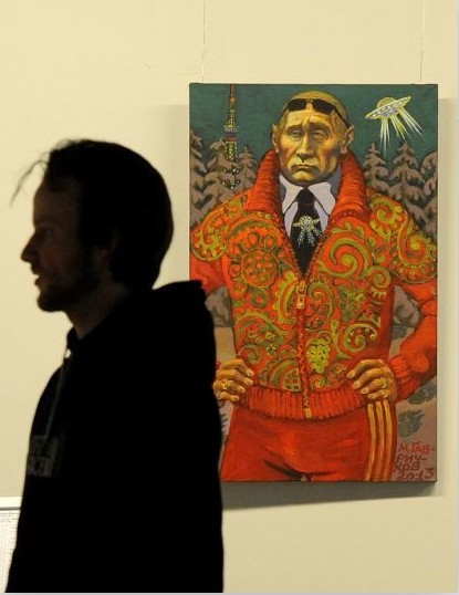 据报道,普京在这幅画中穿着印有俄罗斯传统图案的服装,而他的肩膀上方则盘旋着一架UFO。 据该展览组织者之一的画家尼古拉•科佩金介绍,此次展览命名为“ЛЕНЭНЭРБЕ”,暗指“第三帝国”神秘组织“德国古代历史遗产研究社团”(存在于1935-1945年德国)。据悉,该组织曾致力于寻找不明飞行物。