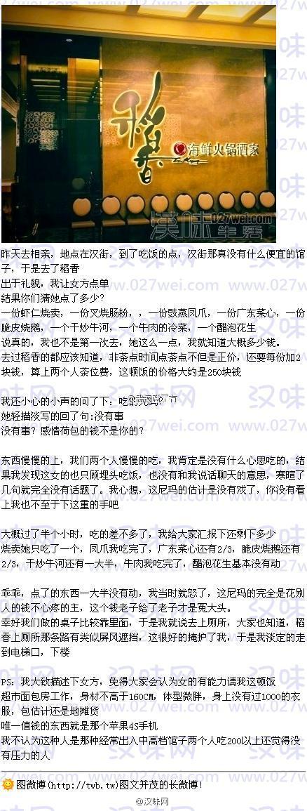 哈哈··在微博上看到这条PO··关于相亲的消费的