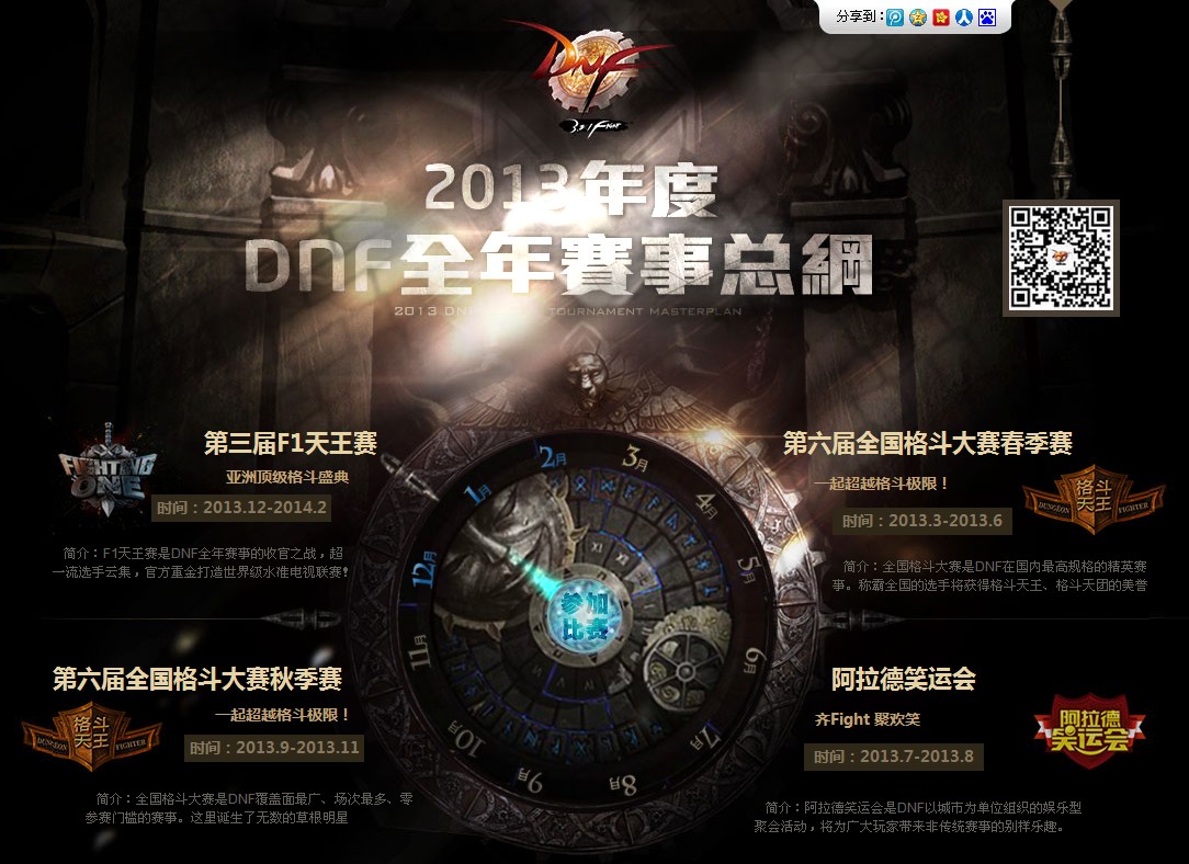 今天(3月22日),DNF官方公布了2013年DNF官方赛事总纲。从公布的信息中可以看出,今年DNF将有三大赛事亮相:DNF第三届F1天王赛、第六届全国格斗大赛(分为春季赛和秋季赛两个赛季)、阿拉德笑运会。