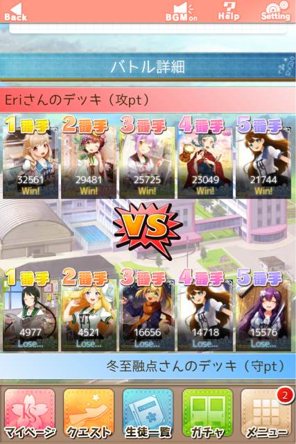 关于对手的选择,攻击对方最好选排前3人物的支持者,头像是初始送的SR的卡,短语是多多关照的,这样的人90%是新手,很容易在不吃BUFF的情况下就能拿到8PT。如果吃到3被攻击的BUFF的话就随便选吧,想输都难,攻击随便上3万的,没人有3万防。。。。。