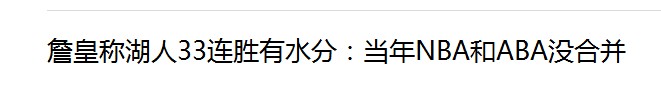 我皇说的是NBA和ABA没有合并,什么时候有说湖人33连胜有水分了,整个一脑残。