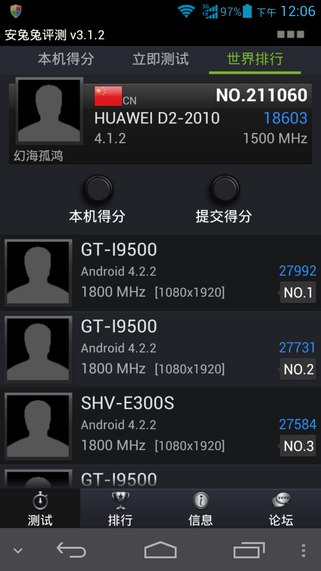 创新高了我最好17600+——来自华为Acsend D2 ★闫之有李,大爱关羽☆