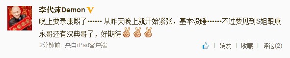 李代沫要上康熙了,好想MOMO也去呀…………
