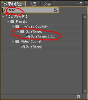 预置安装方法:把文件夹“__-Video Copilot-__”整个复制到你AE(Adobe\Adobe After Effects CS5\Support Files)的support files下的 Presets 文件夹下,然后打开AE,在预置/效果搜索窗口输入sure target就可以看到了