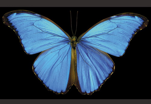 蓝闪蝶也称为"蓝摩佛蝴蝶",其特别之处就在于它们会利用自己的色彩优势来保护自己.当有捕食者接近时,它们就会快速振动自己的翅膀,产生闪光现象来恐吓对方.这种热带蝴蝶并不是以花蜜为食,相反它们更喜欢吃成熟热带水果的汁液,比如芒果,荔枝等.