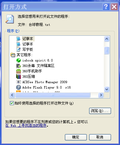 有的话就选中;若没有单击右下角的“浏览”按钮,到你的CS安装目录,找到CS可执行文件,及扩展名为exe的图标(注:不要选择快捷方式,就是左下角有小箭头的图标不要选择),选中确定,这样在列表中就可以看到CS的图标了——