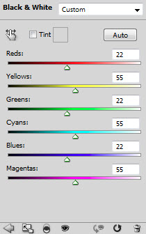 6、添加下面的图像调整层并已模特为底层执行剪贴蒙版命令:黑白。