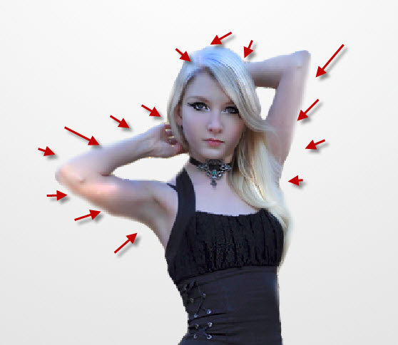 5、用裂痕笔刷作橡皮擦,擦掉模特某些部分,如图。在你用橡皮擦之前,调整为较小尺寸的笔刷。