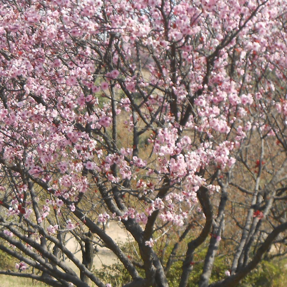 春日赏桃花,桃花隔山望
