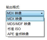 输出格式可以选择MDX映像、MDS/MDF映像、标准ISO、APE音频映像。