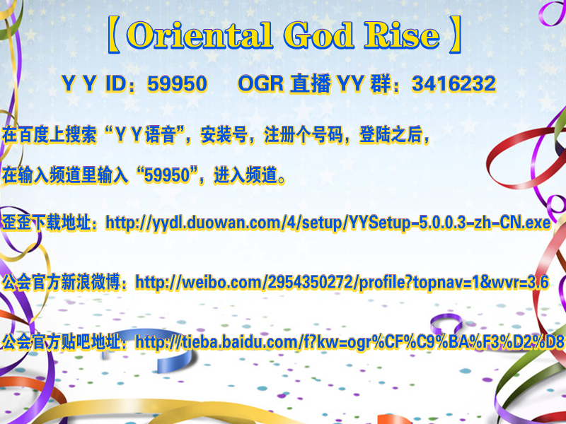Oriental God Rise直播YY群:3416232