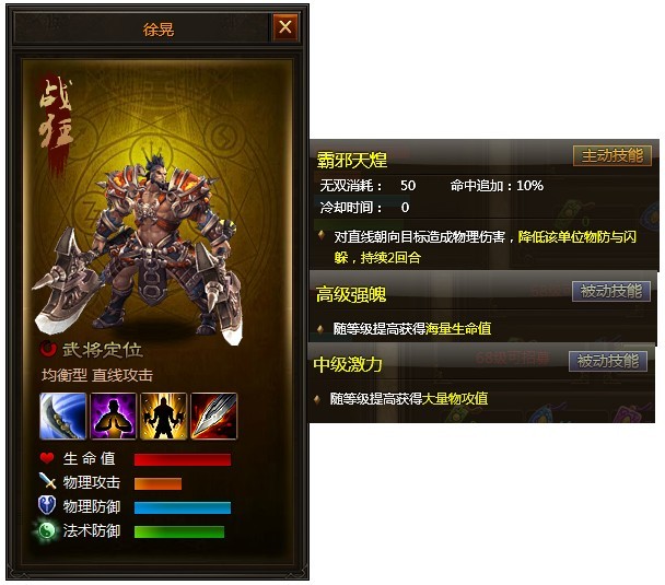 徐晃怎么样?如果作为后军输出使用,凭借本身的双防高生命加成,再加上后军的命中速度,再主堆一下物攻和暴击,会不会用起来也不错?因为攻击位置可控,而且是少见的打一排,感觉还是有一定可用性的吧。