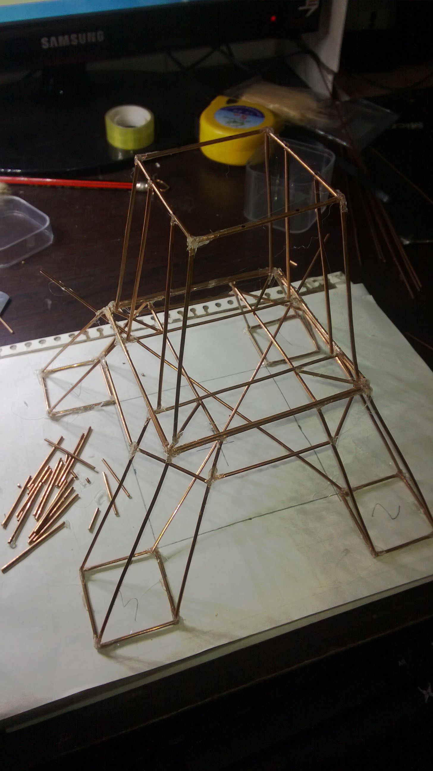 新手用铜丝做的埃菲尔铁塔,请大神指教