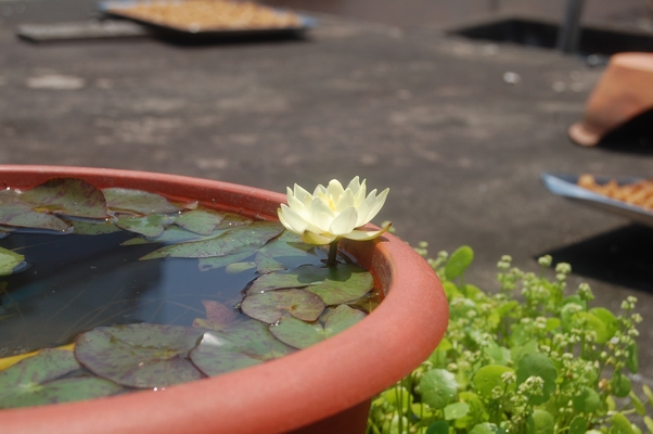 我家的小海也开始长出水叶了就是还没有漂起来!目前还没有看见花蕾,很有想把土扒开看看的冲动!去年还开了两朵!