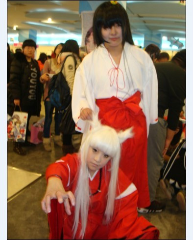 图片来自: angelklan的百度相册犬夜叉和自家桔梗……哈哈哈哈,桔梗比犬夜叉高!于是,就有了一只蹲下的效果!