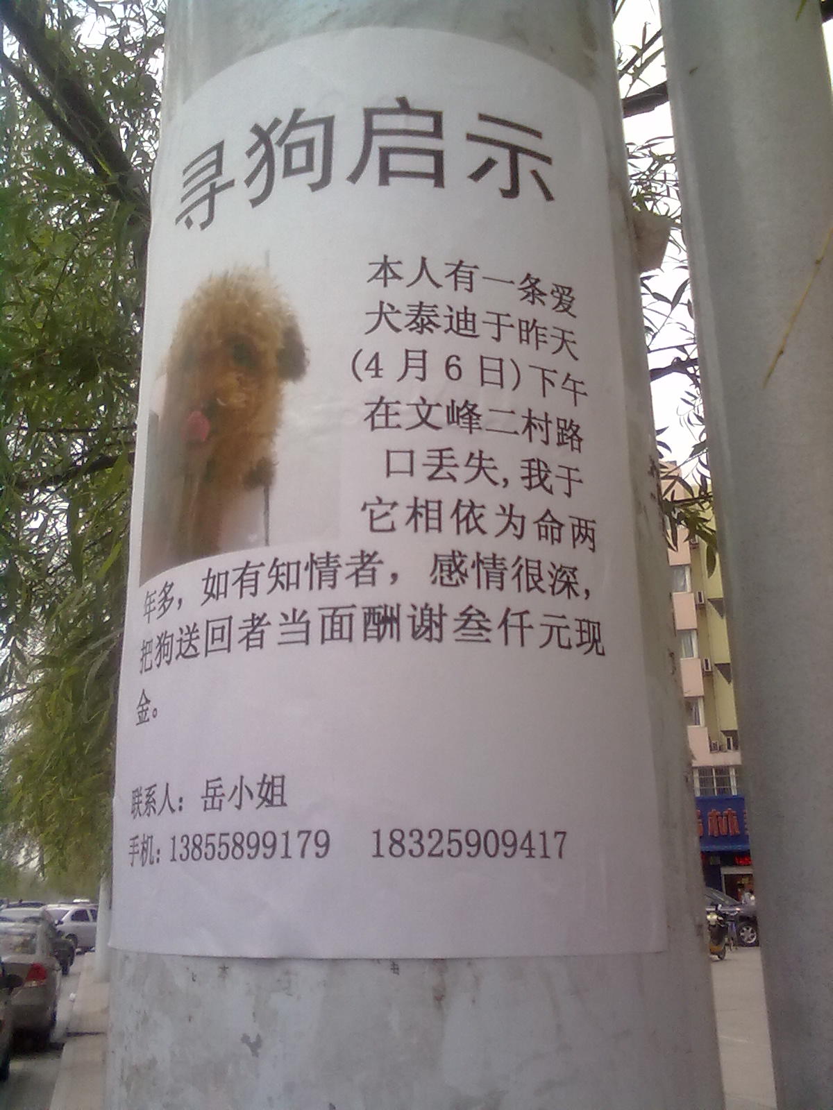 悬赏三千元寻泰迪、求了(文峰附近)