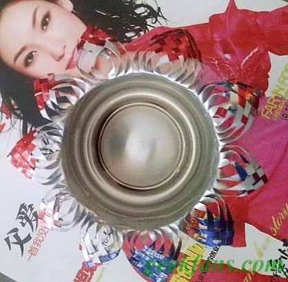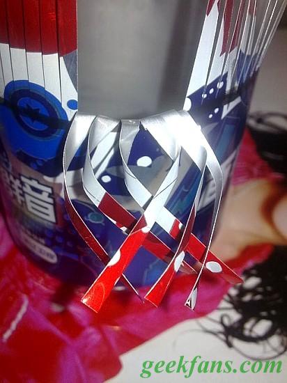 注意:在编织花边的时候必须小心,因为易拉罐剪开后是很锋利的