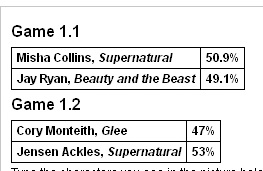 这个POLL还是挺重要的,今天twitter上全是呼唤粉丝投票的,包括从不care我们的大老板CBS!现在落后囧天使:http://www.eonline.com/news/405793/alpha-male-madness-vote-for-the-final-2