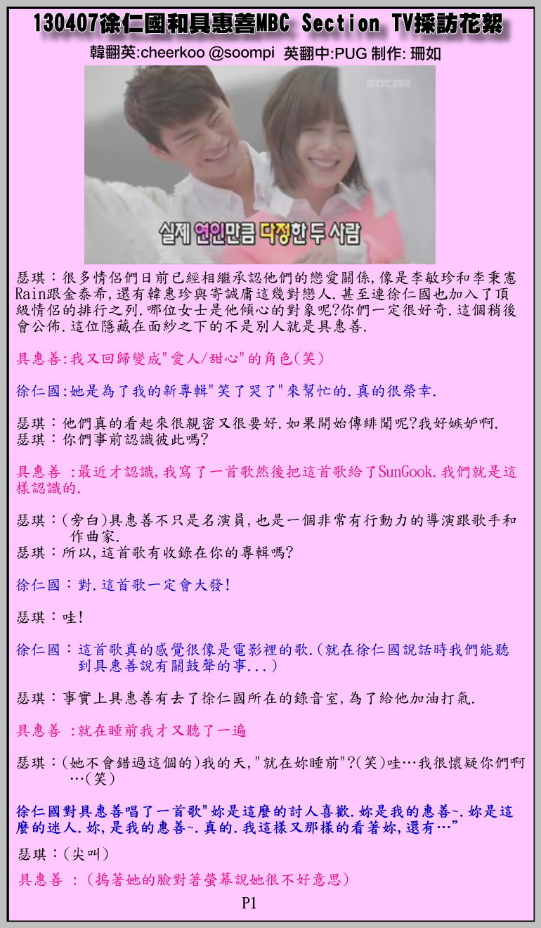 『13.04.09』◇中译◇130407徐仁国和具惠善MBC Section TV