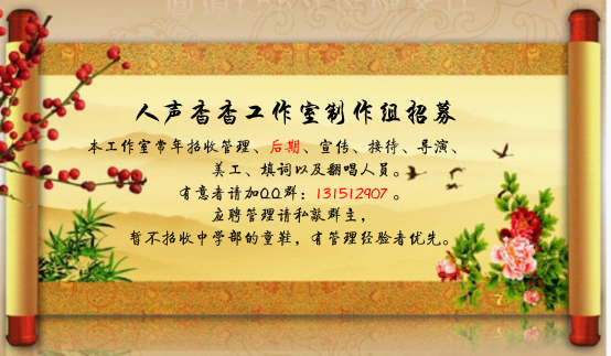 【招募】人声杳杳工作室招募歌曲合成人员