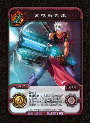 2速6伤,霸体5(又是5),种族值低,优点是不亏手牌,但别人就知道你的手上至少有张激光炮,放不放看个人爱好了(话说DNF中这技能不错呀)。建议放入量:0、2或3(不能放一)